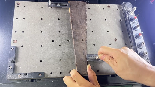 將檀木裝夾在iCNC加工基板上。