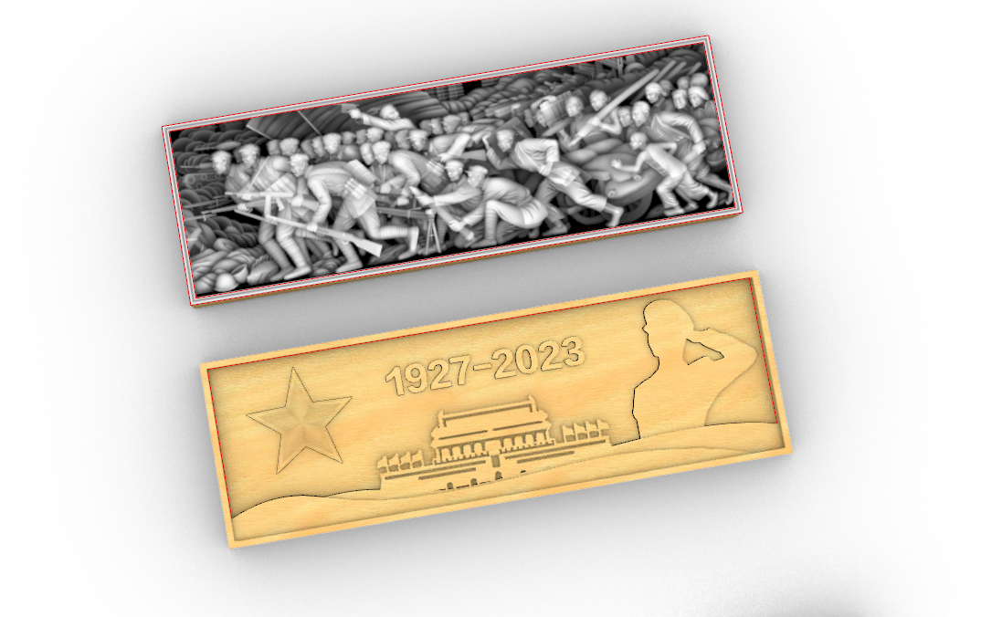 將代木裝夾在加工基板上,選擇“慶八一建軍節(jié)擺件正面”文件進行加工。