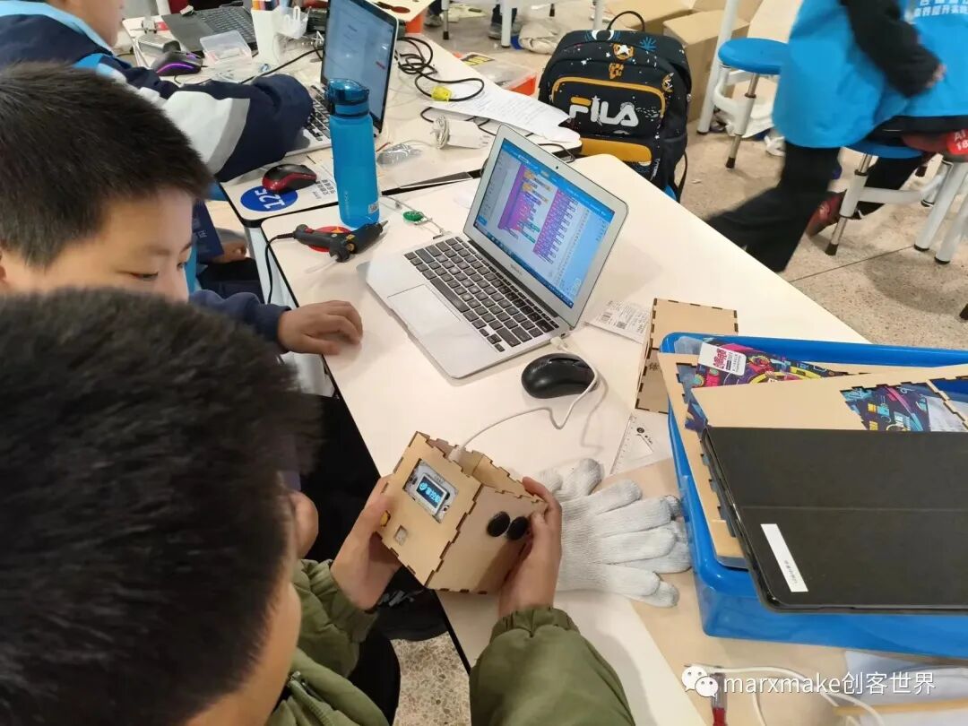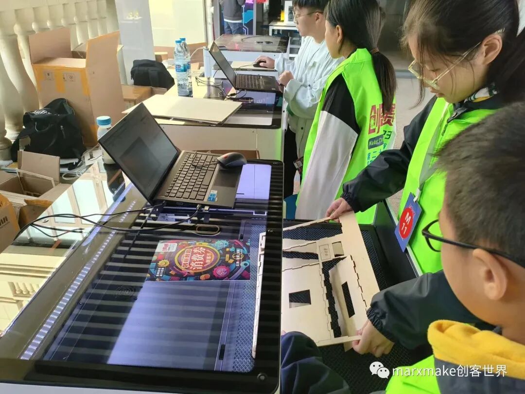 比賽分設(shè)創(chuàng)意智造、人工智能、“超能小球”任務(wù)挑戰(zhàn)三個(gè)項(xiàng)目。在創(chuàng)意智能項(xiàng)目中,馬爾克斯激光切割機(jī)成為小創(chuàng)客們?cè)煳锏暮脦褪帧?/strong>