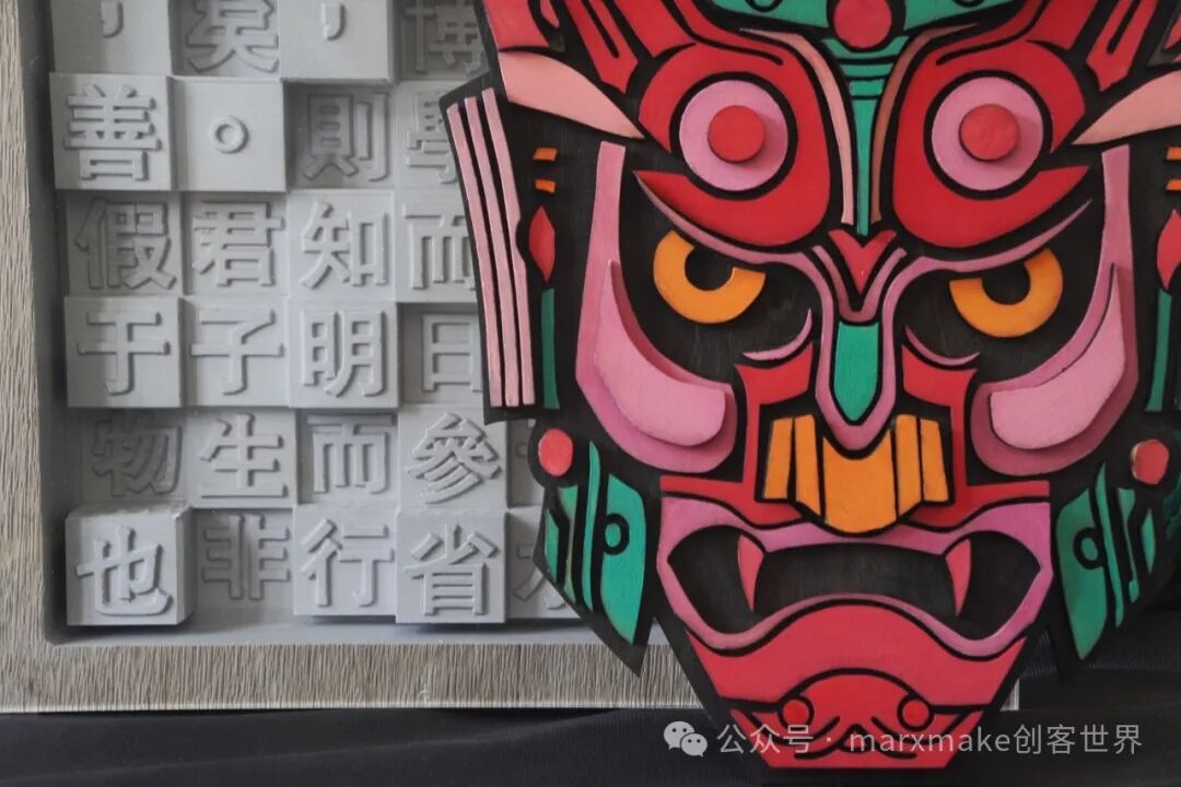 將200x300x3mm椴木板放置在iLAM的切割臺上,導入儺面具設(shè)計圖紙進行切割。